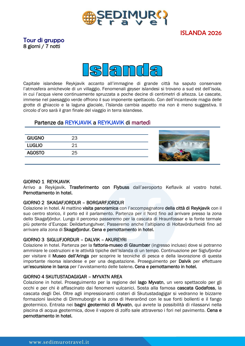 Islanda da Reykjavik 8 giorni