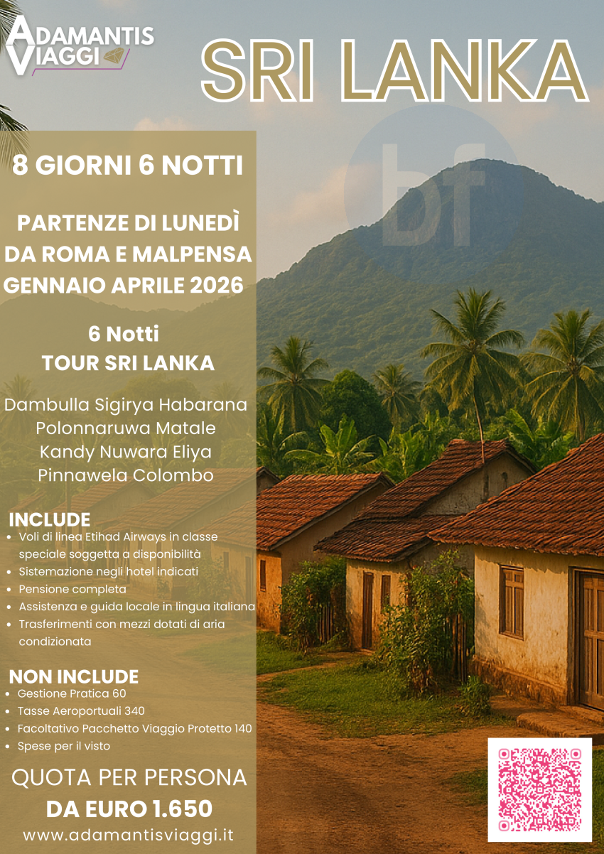 Tour Sri Lanka - 9 Giorni 6 Notti Gennaio Aprile 2026