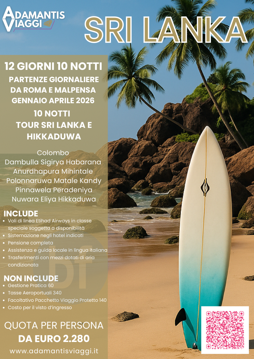 Tour Sri Lanka e Hikkaduwa - 12 Giorni 10 Notti Gennaio Aprile 2026